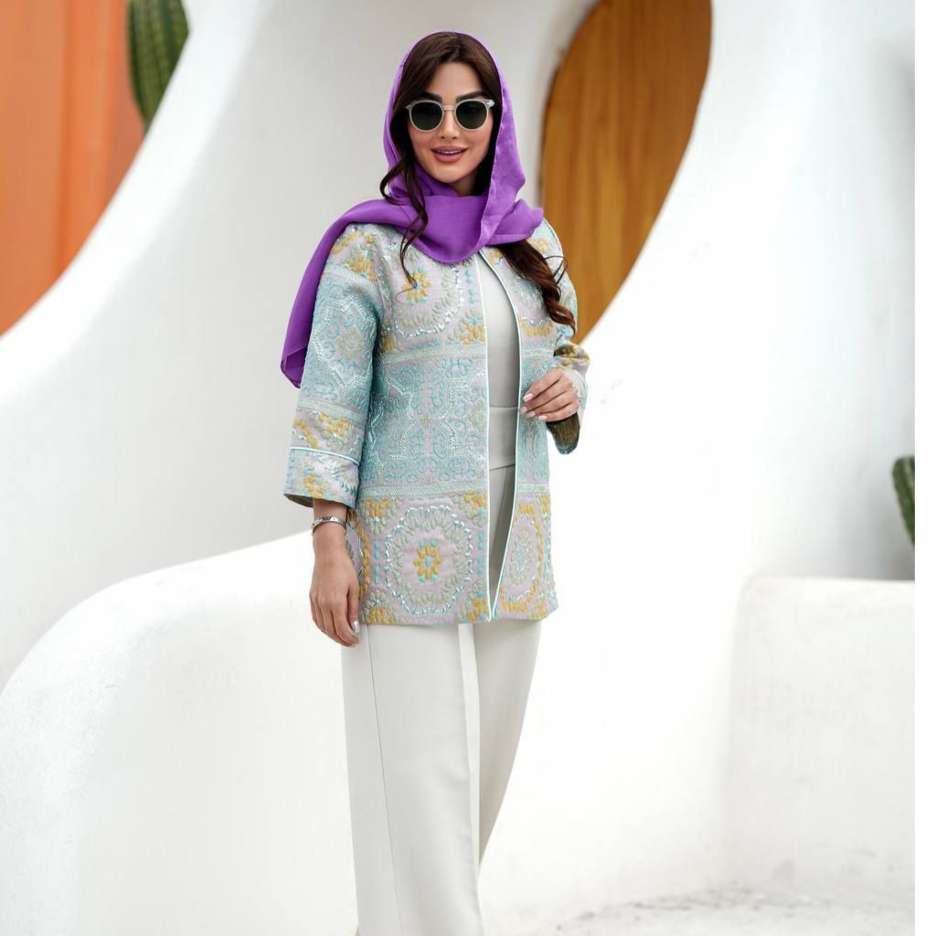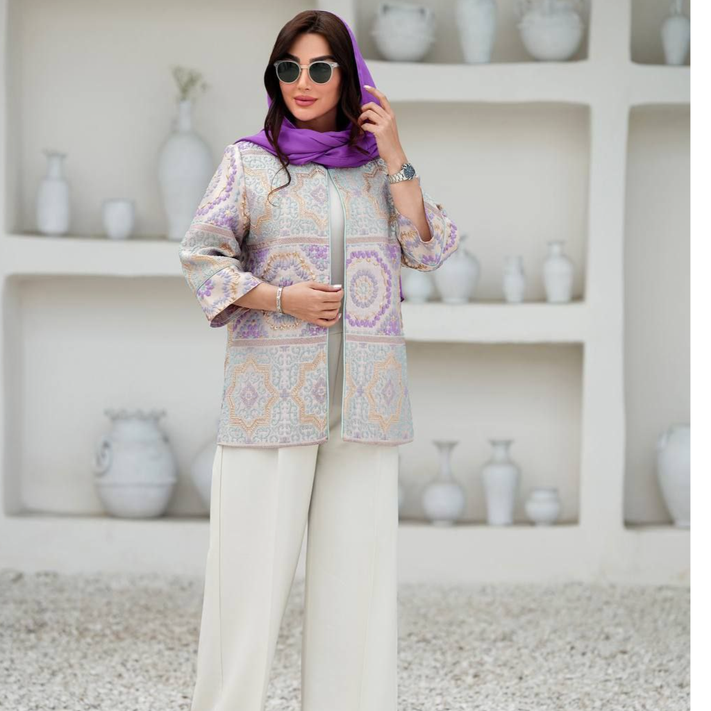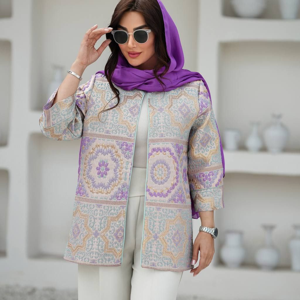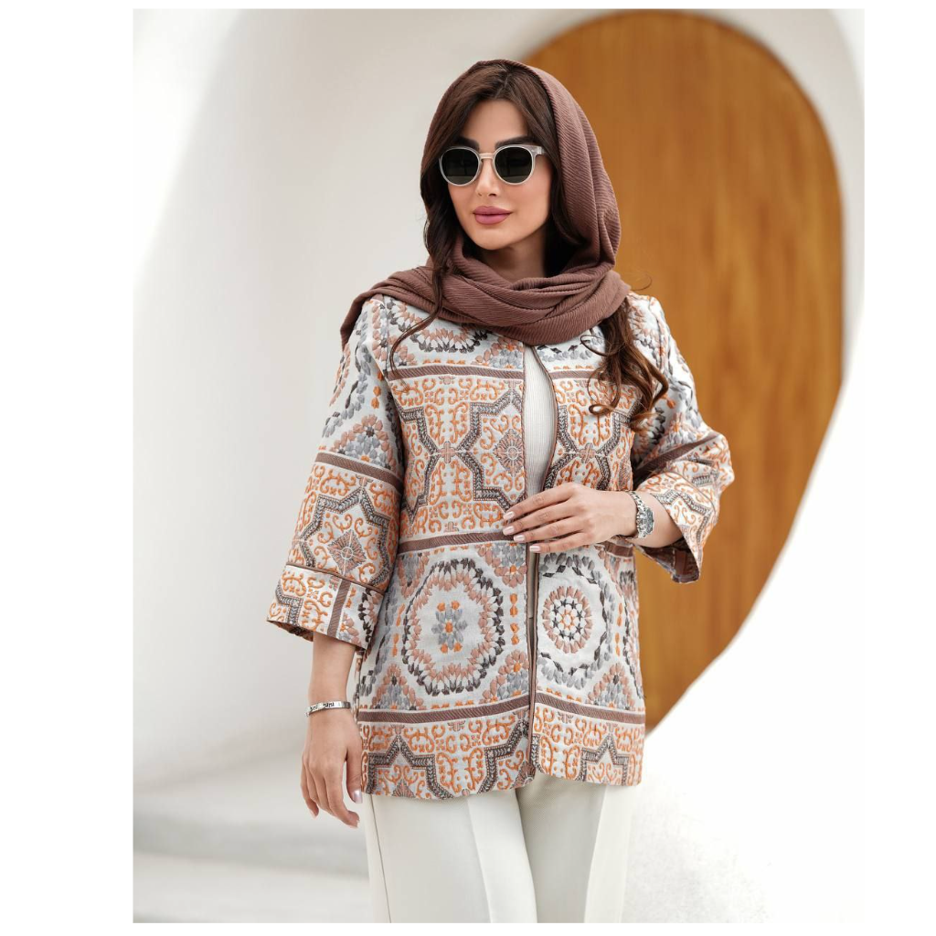 🧵جنس پارچه :ژاکارد ترک با طرح فلوک برجسته