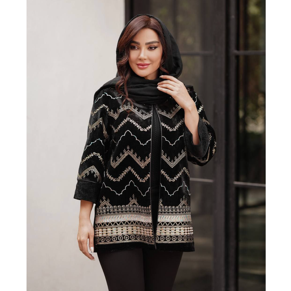 🧵جنس پارچه :مخمل هندی پنل دار ، پولک دوزی